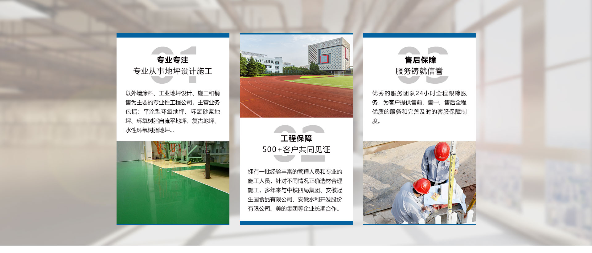 安徽世博裝飾工程有限公司成立于2009年,是一家以外墻涂料、工業(yè)地坪設(shè)計(jì)、施工和銷售為主要的專業(yè)性工程公司、是工業(yè)地坪施工的專業(yè)企業(yè)。公司設(shè)立了售后服務(wù)中心,用戶遍布全國(guó)大中小城市,一大批具有標(biāo)志性的長(zhǎng)期合作伙伴。“世博公司”環(huán)氧地坪工程,受到了越來(lái)越多的不同行業(yè)用戶的好評(píng)及青睞。公司擁有一批經(jīng)驗(yàn)豐富的管理人員和專業(yè)的施工人員,以保障產(chǎn)品的成功應(yīng)用,用較小的代價(jià)獲得理想的效果,尤其在地坪涂裝方面優(yōu)勢(shì)突出。而且以好的品質(zhì)管理模式,向客戶提供“獨(dú)具魅力”、“性能優(yōu)異”、“質(zhì)量穩(wěn)定”的產(chǎn)品。公司主要產(chǎn)品包括:平涂型環(huán)氧地坪、環(huán)氧砂漿地坪、環(huán)氧樹脂自流平地坪、滾涂型防靜電地坪、自流平防靜電地坪、復(fù)古地坪、水性環(huán)氧樹脂地坪、彩色透水混凝土地坪、壓花壓模藝術(shù)地坪、金剛砂耐磨硬化地坪、混凝土密封固化劑地坪、乙烯基酯重防腐地坪、GEP 標(biāo)準(zhǔn)型地坪、彈性PU運(yùn)動(dòng)場(chǎng)地坪、塑膠跑道地坪,PVC橡膠地板、停車場(chǎng)地坪、無(wú)震...